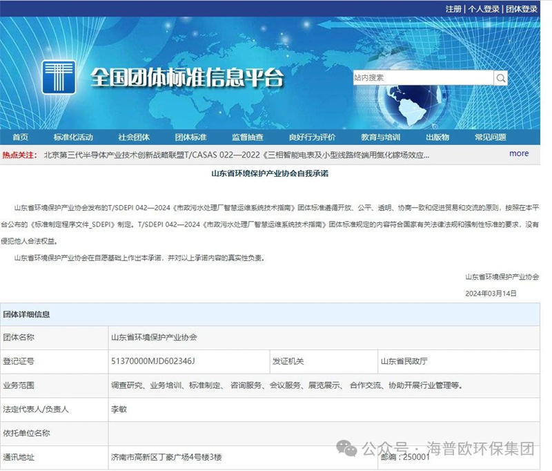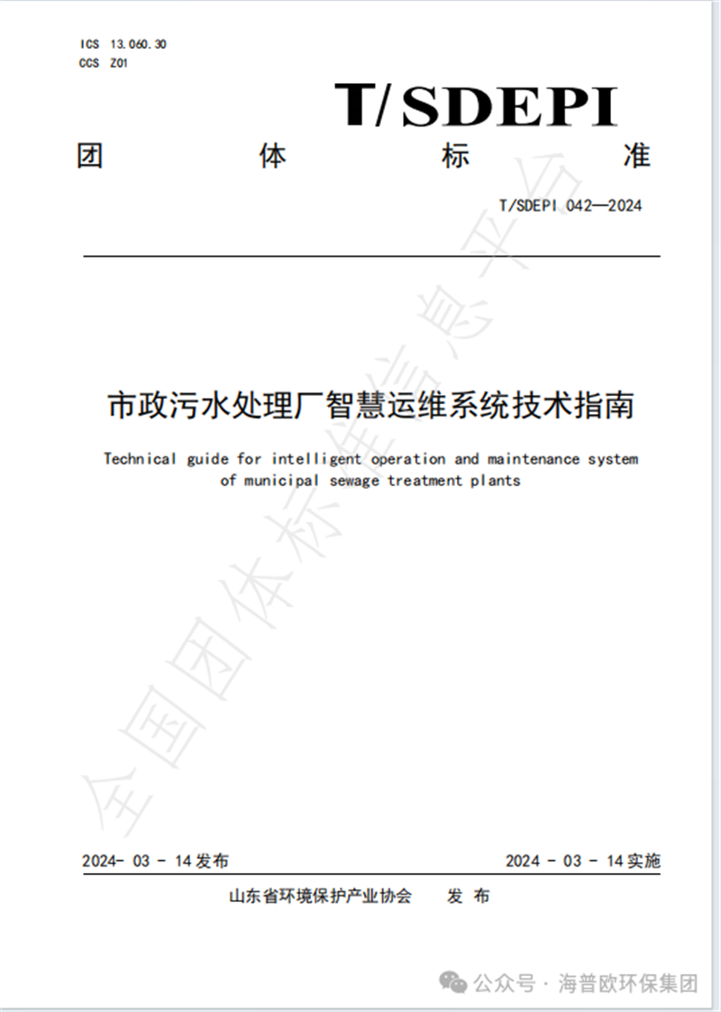 由海普歐環(huán)保集團(tuán)主導(dǎo)、山東環(huán)境保護(hù)產(chǎn)業(yè)協(xié)會(huì)和山東建筑大學(xué)聯(lián)合起草,眾多環(huán)保企業(yè)參編的《市政污水處理廠智慧運(yùn)維系統(tǒng)技術(shù)指南》團(tuán)體標(biāo)準(zhǔn)于2024年3月14日正式發(fā)布并實(shí)施!
