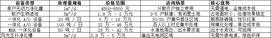 三、2025 年農(nóng)村污水處理設(shè)備價格參考表