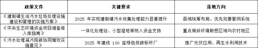 2025 年以來,國家層面密集出臺政策推動小型污水處理站提質增效,形成 “建設有標準、運維有保障、減排有目標” 的管理體系,為行業(yè)發(fā)展劃定清晰路徑。
